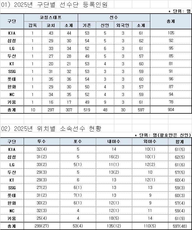 | 👥 구단별 선수단 등록인원 📍 위치별 소속선수 현황 |