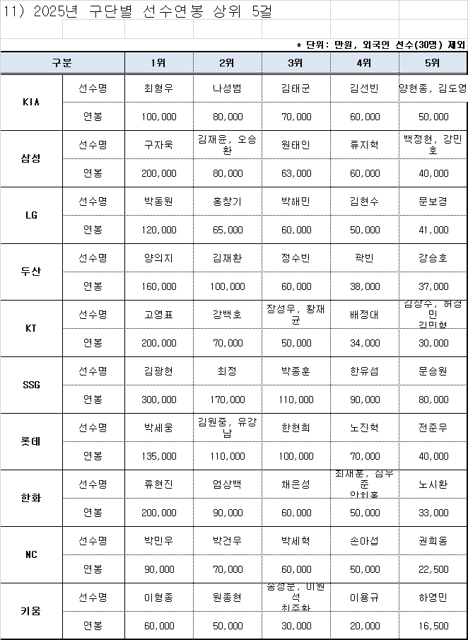 2025년 KBO 리그 연봉 TOP 💰