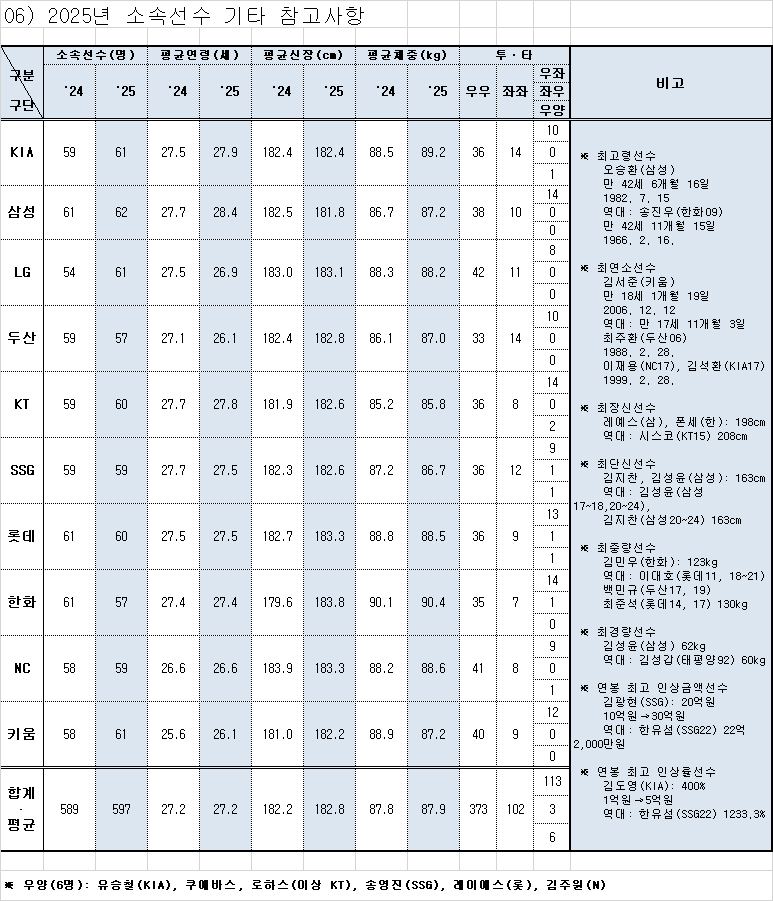 | 🌍 2025년 KBO 외국인선수 현황 | 📌 2025년 소속선수 기타 참고사항 |