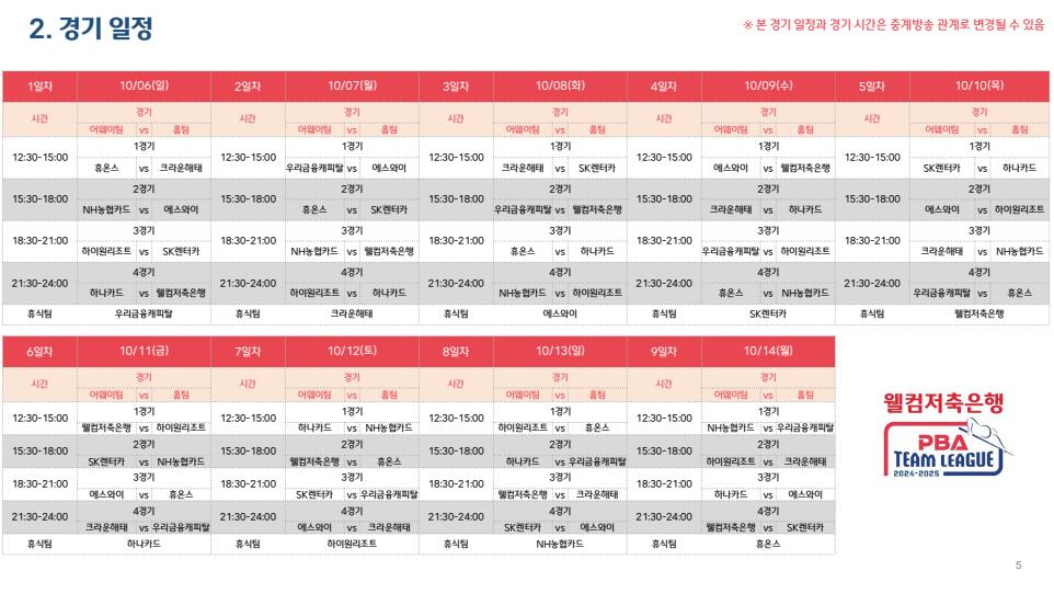 안녕하세요. IG SPORTS입니다! 오늘은 웰컴저축은행 PBA 팀리그 2024-2025의 3라운드를 소개해 드릴게요!