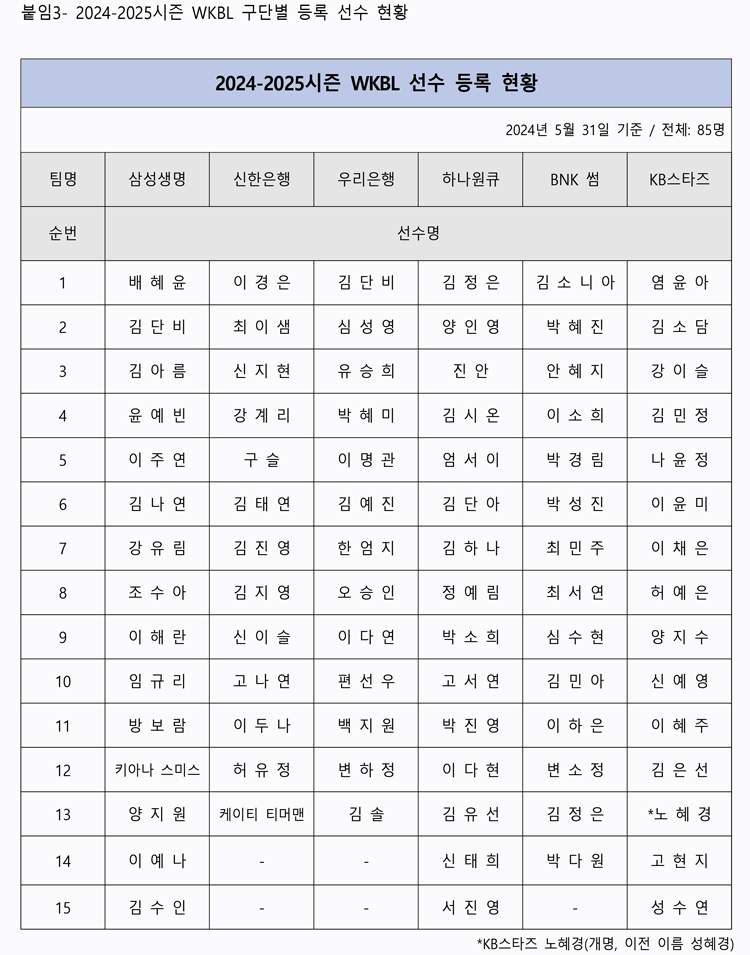 2024-25 시즌 선수 등록 현황 🌟