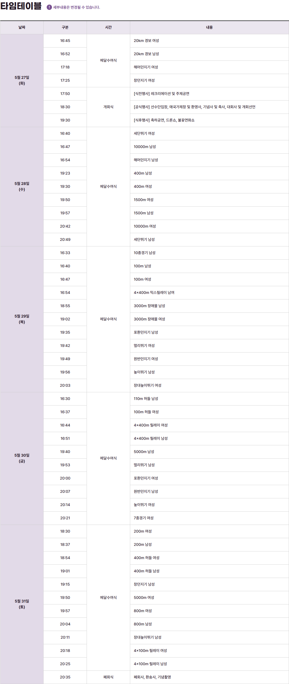경기는 매일 오전과 오후 세션으로 나뉘어 진행돼요. 개회식은 27일 저녁, 폐회식은 31일 밤에 열릴 예정이라 전체 일정 체크는 필수예요! |📆 세부 경기 일정 👈