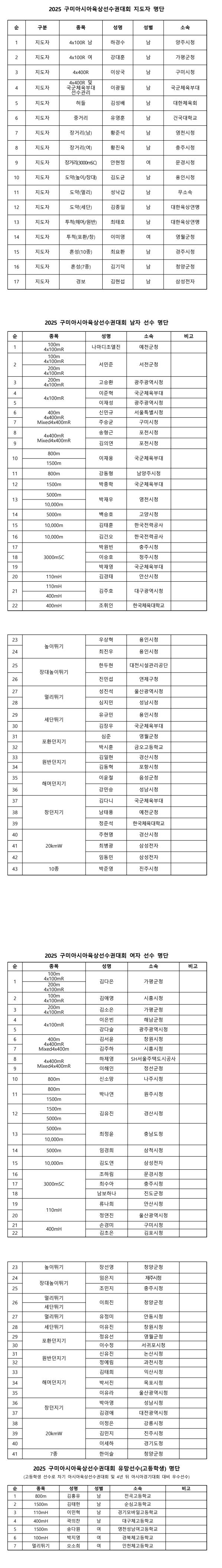 | 대회명 | 2025 구미 아시아육상경기선수권대회 |