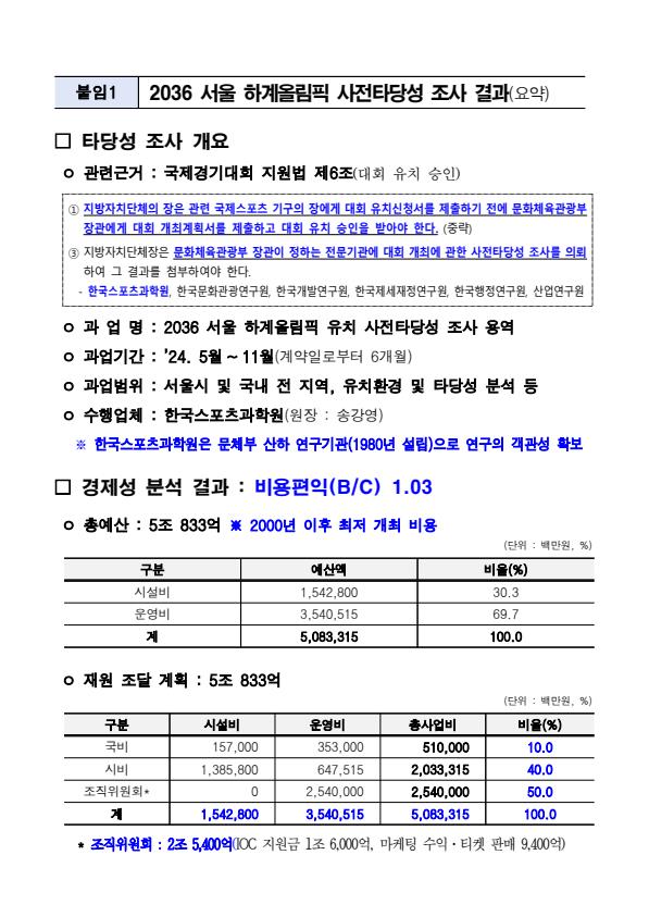 🏅 2036 서울올림픽, 경제 타당성 확보!