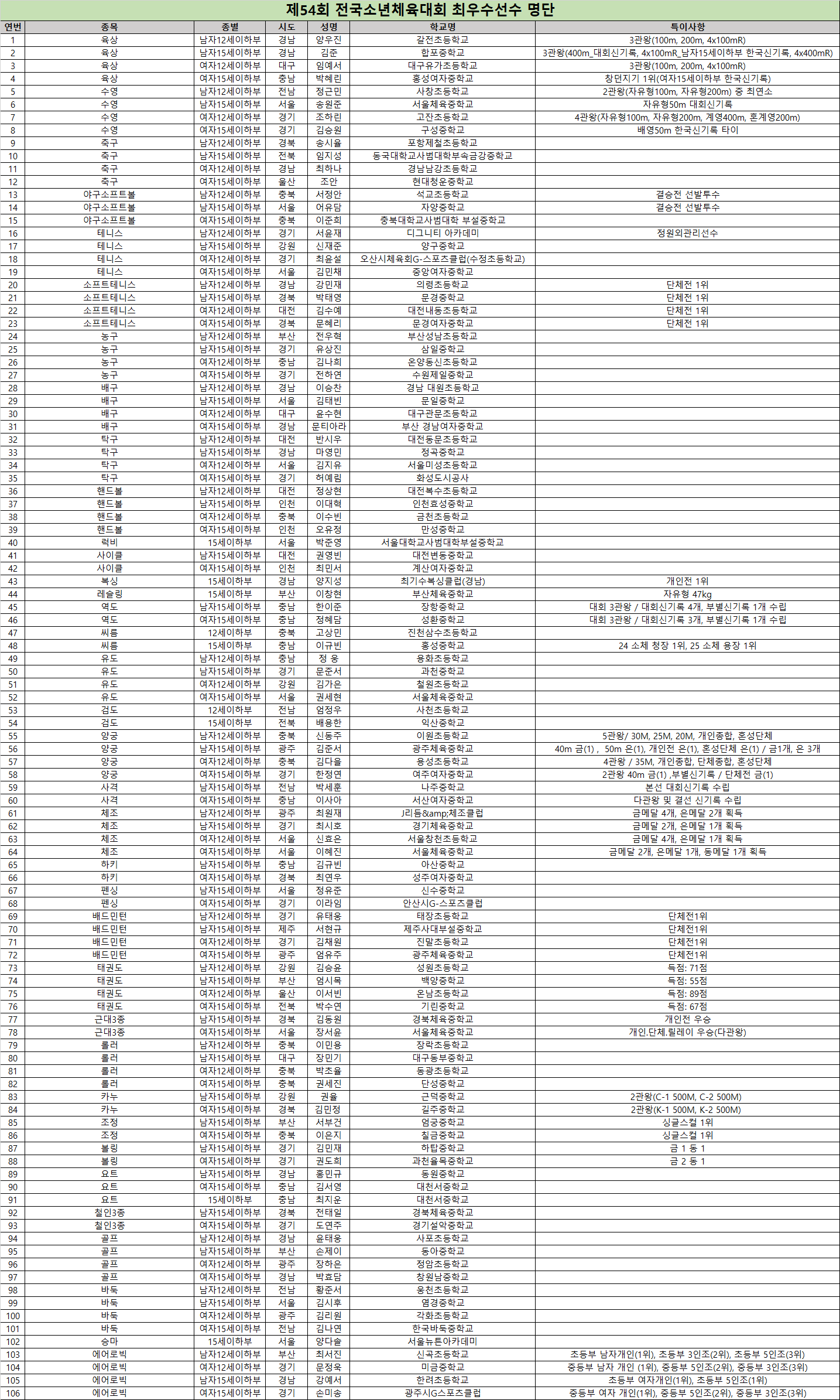 대회에 참가한 선수들은 물론, 학교와 지역 사회도 함께 기뻐할 만한 멋진 성과였어요.|👥 종목별 최우수 선수 명단 👈