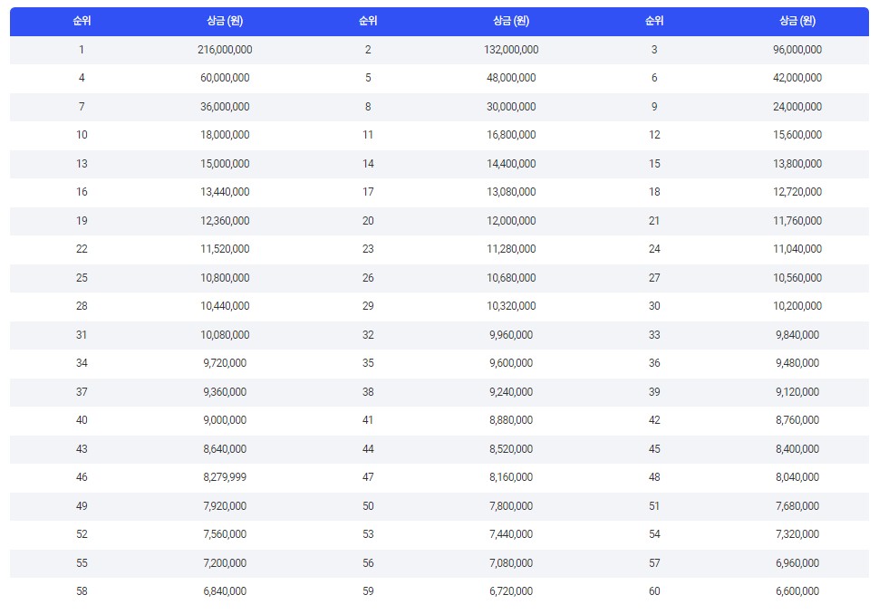 | 우승 상금 | 2억 1천6백만 원 |